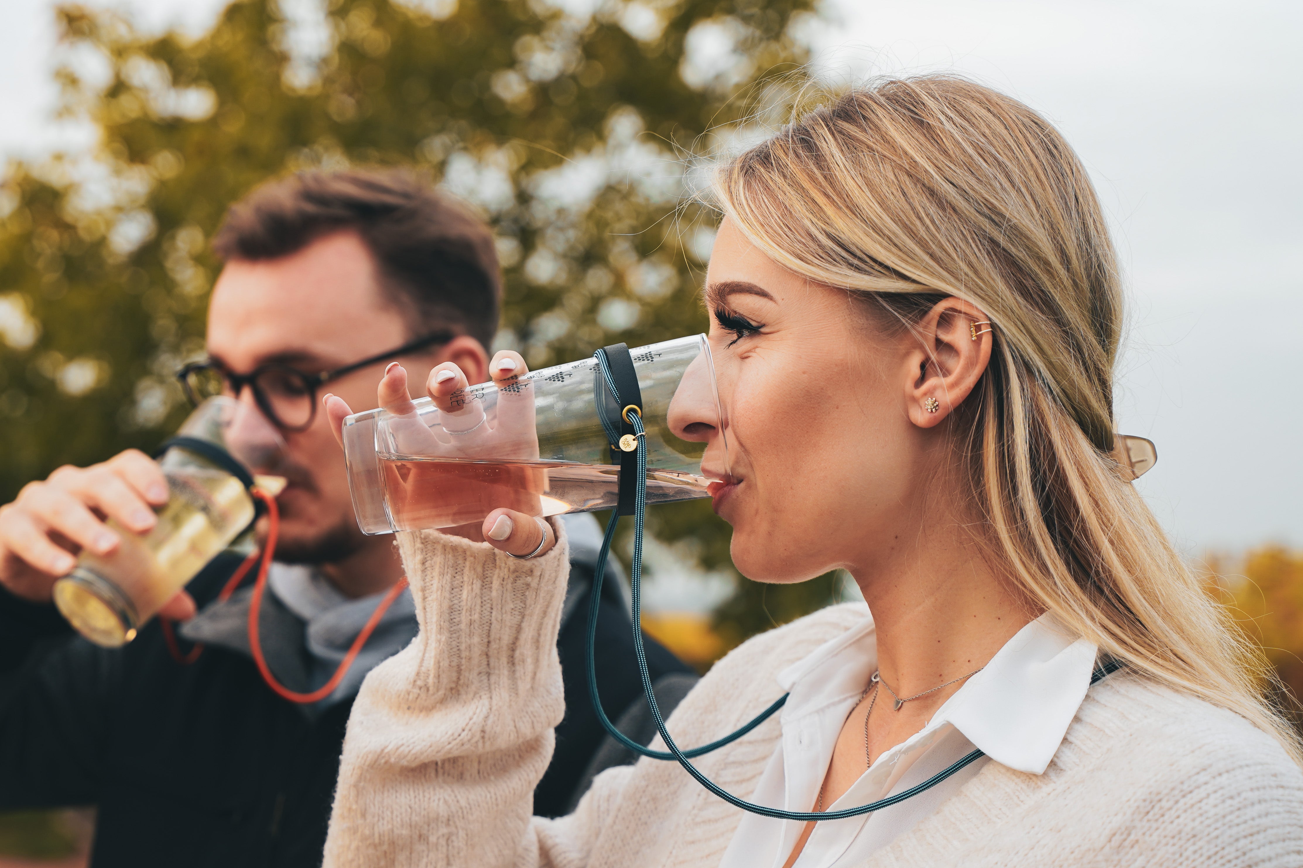 Jeder kennt es: Die Sonne scheint, der Wein steht kalt und die Sonnenbrille sitzt auf der Nase. Nur noch den Weinglas-HängOver um den Hals werfen und es kann losgehen! Der perfekte Begleiter für deine sommerlichen Weinwanderungen, die Weinfeste der Region oder die gemütliche Feierabend-Schorle mit deinen Freunden am Rhein. Dabei hast du immer die Hände frei, um in die Fleischwurst zu beißen, Fotos zu machen oder für den Toilettengang. Damit sind die praktischen Wegbeleiter auch optisch ein echtes Highlight für dein Outfit!